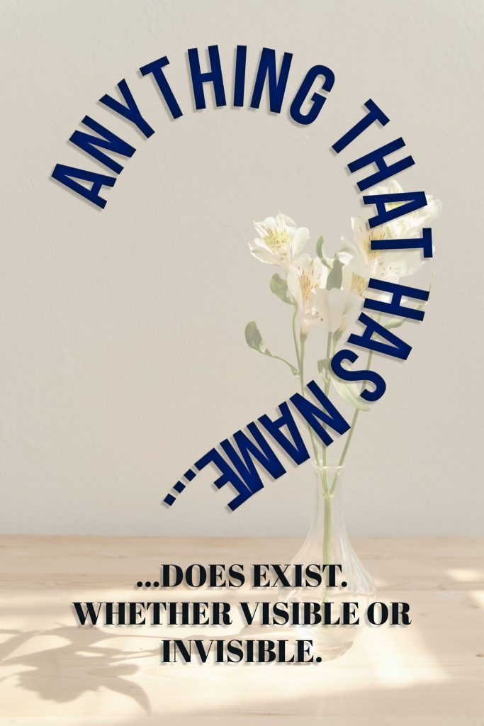 Anything that has name does exist, whether visible to the physical eye or not. We name what we see or experience. As long as it has name, It does exist. Some names existed before we were, And even after we are gone those names will still remain. Some name were, some are and some are to come.